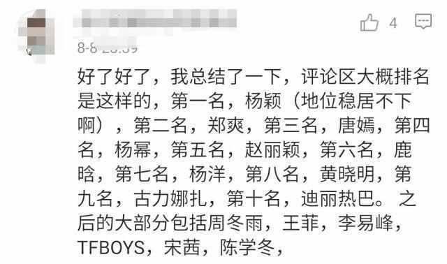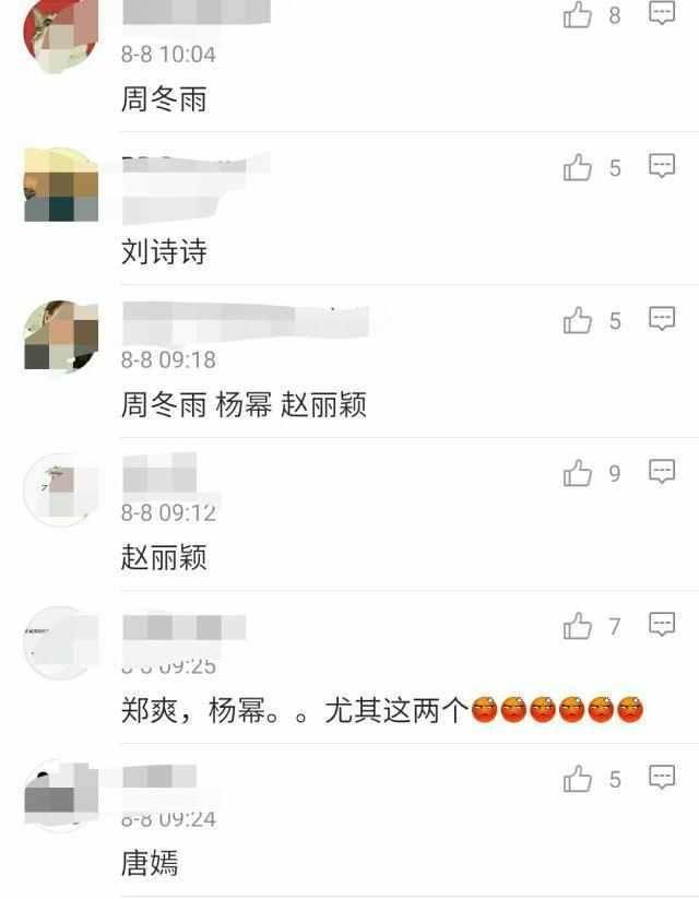 杨幂、唐嫣、刘诗诗、郑爽、周冬雨、赵丽颖纷纷上榜,跟帖点赞的还不少。