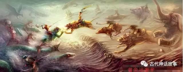 关于这次大战,有许多神话式的传说。据说黄帝平时驯养了熊、罴(音pí)、貔(音pí)、貅(音xiū)、貙(音chū)、虎六种野兽,在打仗的时候,就把这些猛兽放出来助战(有人认为,传说中的六种野兽实际上是以野兽命名的六个氏族)。蚩尤的兵士虽然凶猛,但是遇到黄帝的军队,加上这一群猛虎凶兽,也抵挡不住,纷纷败逃。