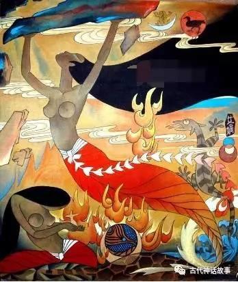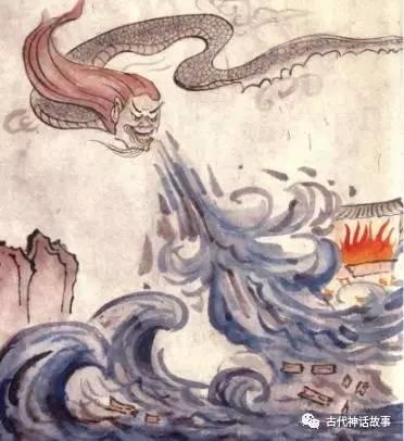 于是两人相约大战,水神共工派遣先锋大将相柳、浮游,猛扑火神祝融氏居住的光明宫,把光明宫长年不熄的神火弄灭了。大地顿时一片漆黑,火神祝融驾着遍身冒着烈焰的火龙出来迎战。所到之处,云雾廓清,雨水齐收;黑暗悄悄退去,大地重现光明。水神共工恼羞成怒,命令相柳和浮游将三江五海的水汲上来,往祝融他们那里倾去。刹时间长空中浊浪飞泻,黑涛翻腾,白云被淹没,神火又被浇熄了。可是大水一退,神火又烧了起来,加上祝融请来风神帮忙,风助火威,火乘风势,炽炽烈烈地直扑共工。共工他们想留住大水来御火,可是水泻千里,哪里留得住。火焰又长舌般地卷来,共工他们被烧得焦头烂额,东倒西歪。