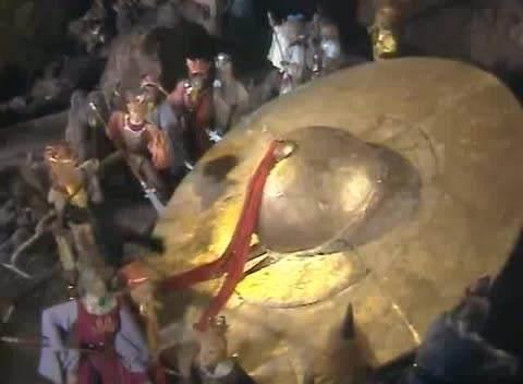 本来以为这兵器也就这样了,后来弥勒佛祖助孙悟空收服黄眉童子时,临走前,这金铙又恢复成原状了。