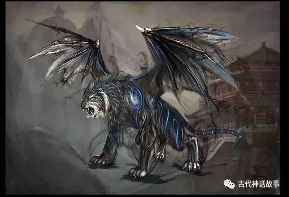 《山海经·海内北经》所载,指穷奇外貌像老虎,长有一双翅膀,喜欢吃人。据说穷奇经常飞到打斗的现场,将有理的一方鼻子咬掉;如果有人犯下恶行,穷奇会捕捉野兽送给他,并且鼓励他多做坏事。