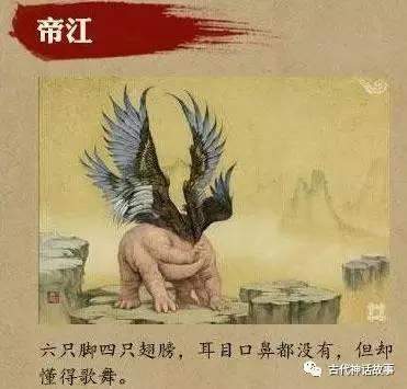 西方的天山上,有一只神鸟,形状像个黄布口袋,红得像一团红火,六只脚四只翅膀,耳目口鼻都没有,但却懂得歌舞,名字叫做“帝江”。