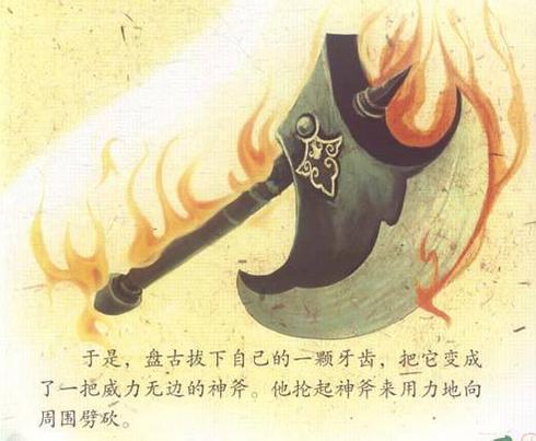 第二,斧子是农耕游牧过度的一种工具,他具有攻击性又具有厚重的德性,可以劈柴做工,盘古使用斧子作为开天辟地的工具正暗含了人们开创新天地的原则,锋利厚重并存。