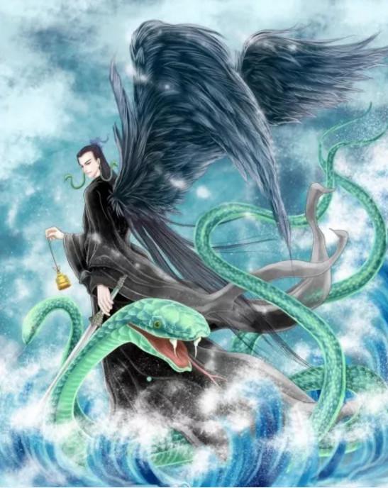 这四方大神的形象非常奇特,《山海经》记载,句芒,鸟身人面,乘两龙;祝融,兽身人面,乘两龙;蓐收,左耳有蛇,乘两龙;禺强,人面鸟身,耳朵挂两条青蛇,脚踩两条青蛇,非常有上古风范。